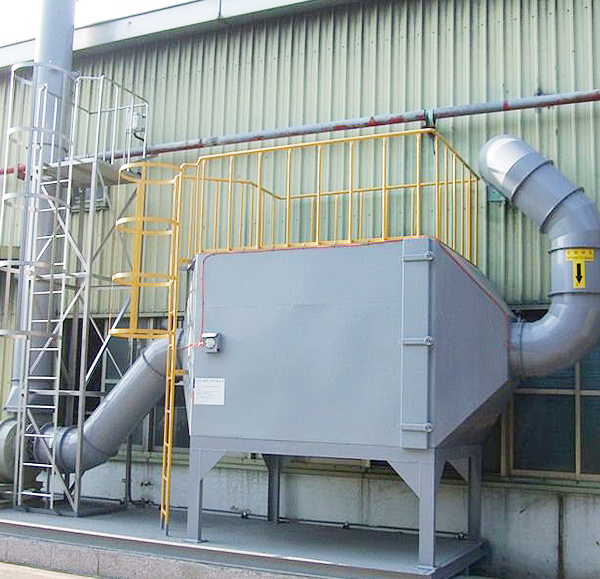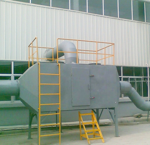 含塵氣體由風機提供動力,正壓或負壓進入塔體,由于活性炭固體表面上存在著未平衡和未飽和的分子引力或化學健力,因此當此固體表面與氣體接觸時,就能吸引氣體分子,使其濃聚并保持在固體表面,污染物質從而被吸附,廢氣經過濾器后,進入設備排塵系統,凈化氣體高空達標排放。