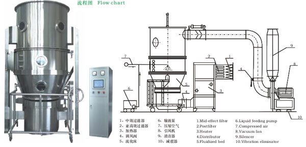藥品造粒及包衣。造粒:壓片顆粒、沖劑顆粒、膠囊用顆粒。包衣:顆粒、丸劑保護層,備色緩釋、薄膜、腸溶包衣。食品造粒及包衣。炒糖、咖啡、可可粉末、奶油粉末果汁、氨基酸、調(diào)味料、膨化食品。農(nóng)藥、顏料色素、染料造粒。粉狀、顆粒、塊裝物料干燥。