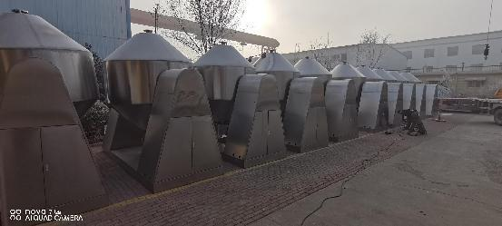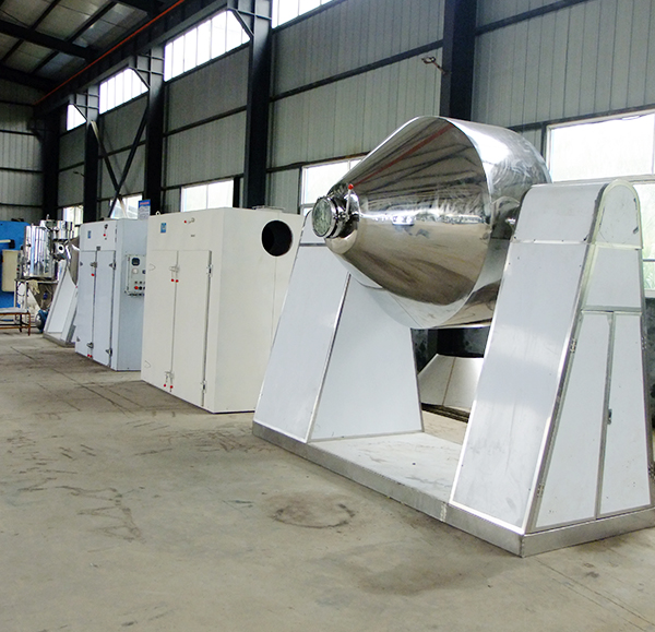 在密閉的夾層中通入熱能源(如熱水、低壓蒸汽或導熱油),熱量經內殼傳給被干燥物。在動力驅動下,罐體作緩慢旋轉,罐內物料不斷地混合,從而達到強化干燥的目的。物料處理真空狀態,蒸汽壓下降使物料表面的水分(溶劑)達到飽和狀態而蒸發了,并由真空泵及時排出回收。物料內部的水分(溶劑)不斷的向表面滲透、蒸發、排出,三個過程不斷進行,物料在很短時間內達到干燥的目的。