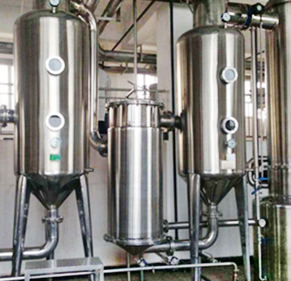降膜蒸發(fā)器又稱降膜濃縮器,屬于降膜式蒸發(fā)濃縮設(shè)備。降膜蒸發(fā)器特別適用于含活性菌發(fā)酵液、熱敏性食品的蒸發(fā)濃縮,也可適用于葡萄糖、木糖、淀粉糖、低聚糖、鮮奶、麥芽糊精等水溶液的低溫連續(xù)蒸發(fā)濃縮。設(shè)備具有傳熱效率高,物料受熱時(shí)間短等主要特點(diǎn),廣泛應(yīng)用于制藥、化工、生物工程、環(huán)保工程廢液回收等行業(yè)。